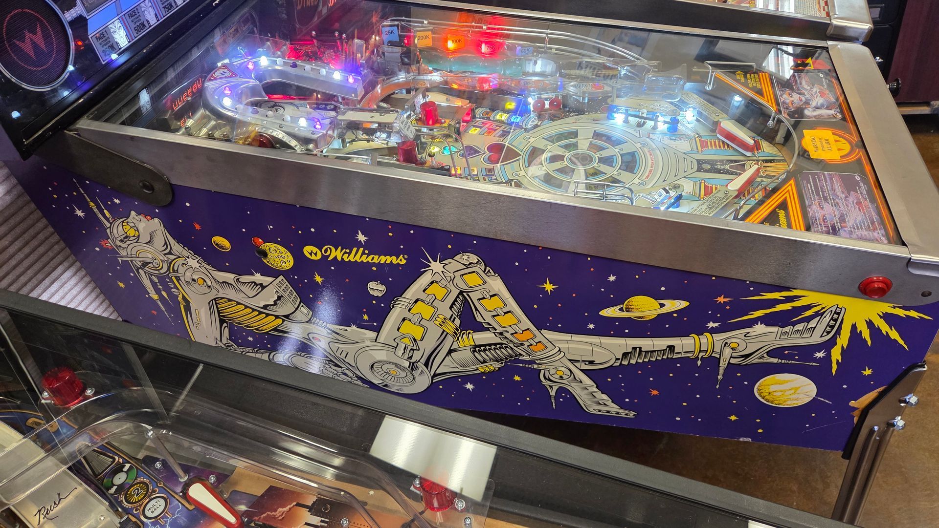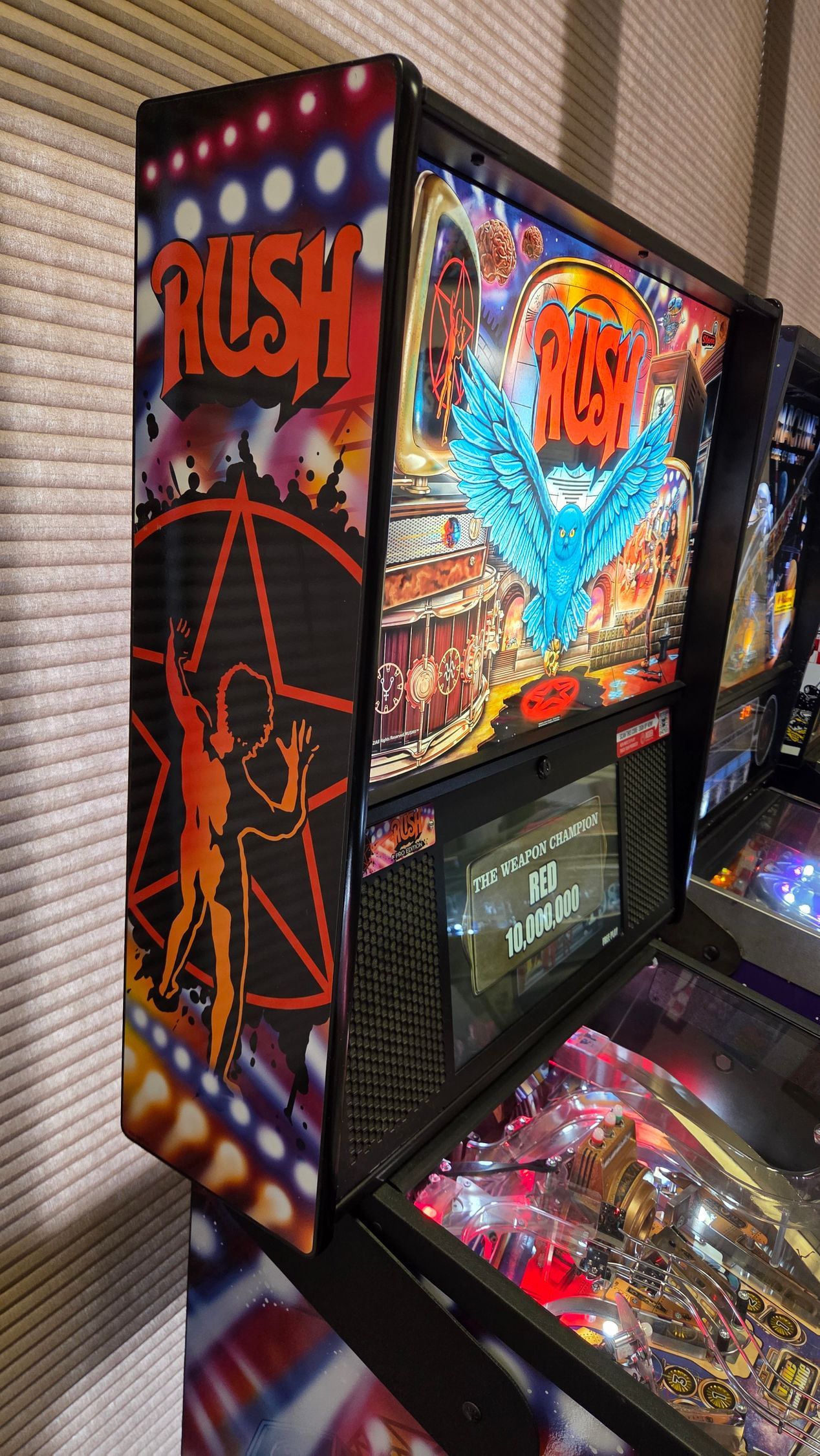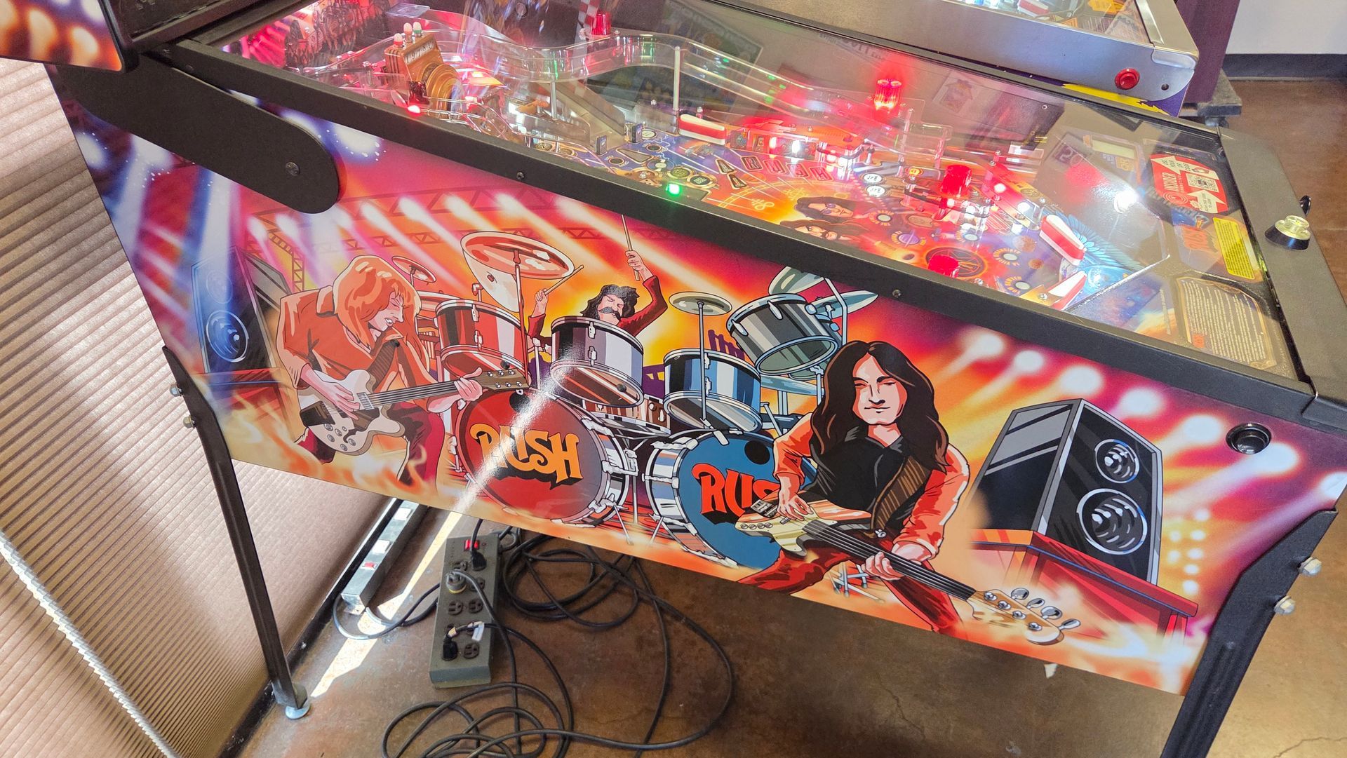 This routed Rush Pro has been updated to the latest code, had flippers freshly rebuilt, rubbers recently changed, and is ready to rock in your home! It was always well-maintained while out on location, and plays great!