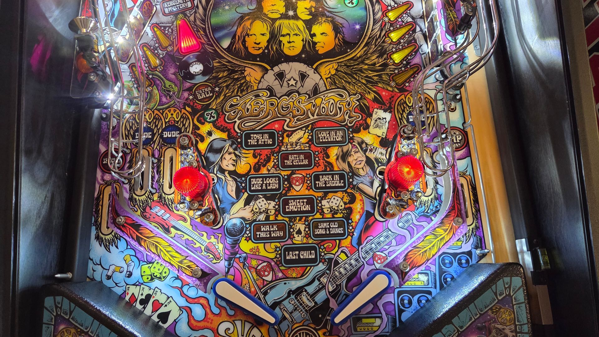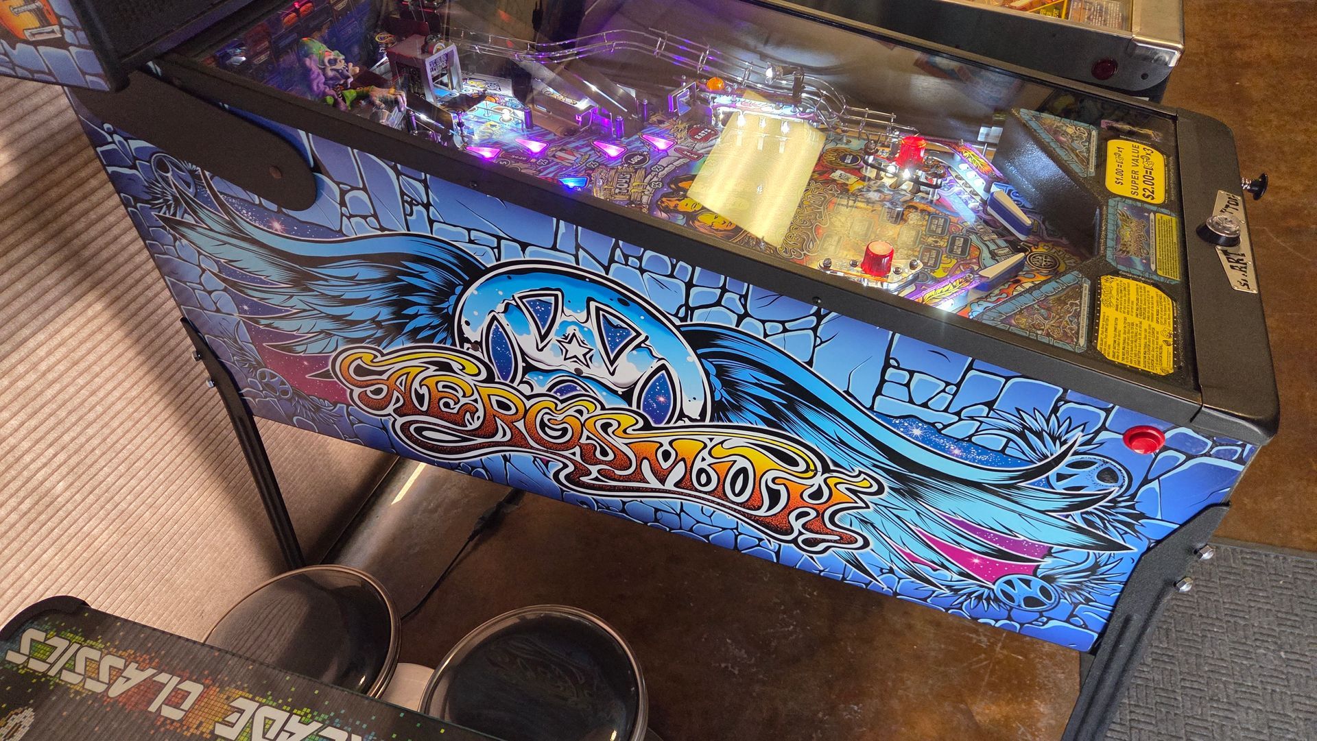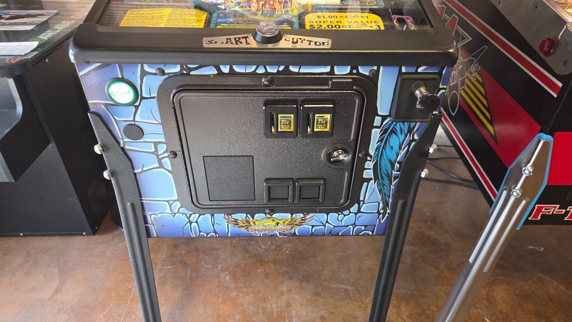 This routed Aerosmith Pro has been updated with the latest code, had its flippers and pop bumpers freshly rebuilt, and is ready to go in your home! It was always well-maintained while out on location and plays great.