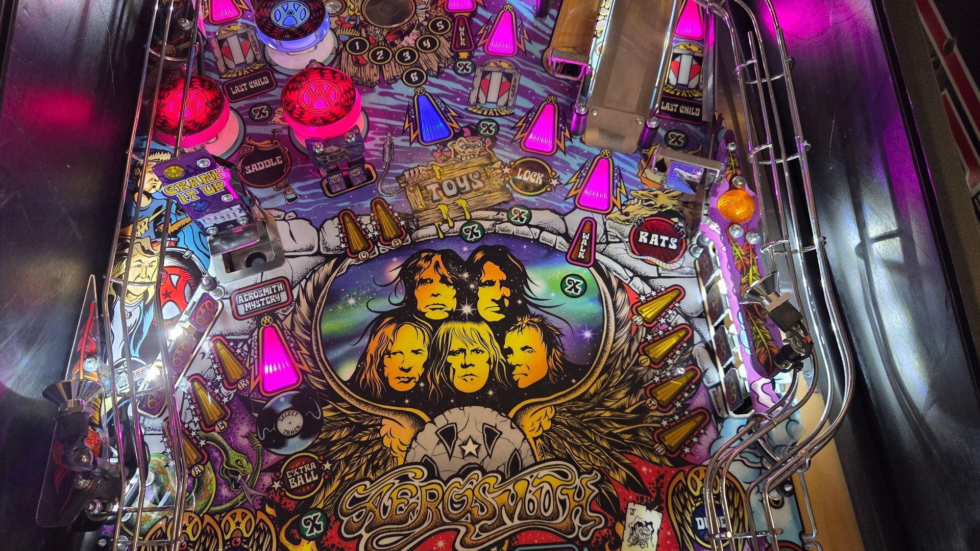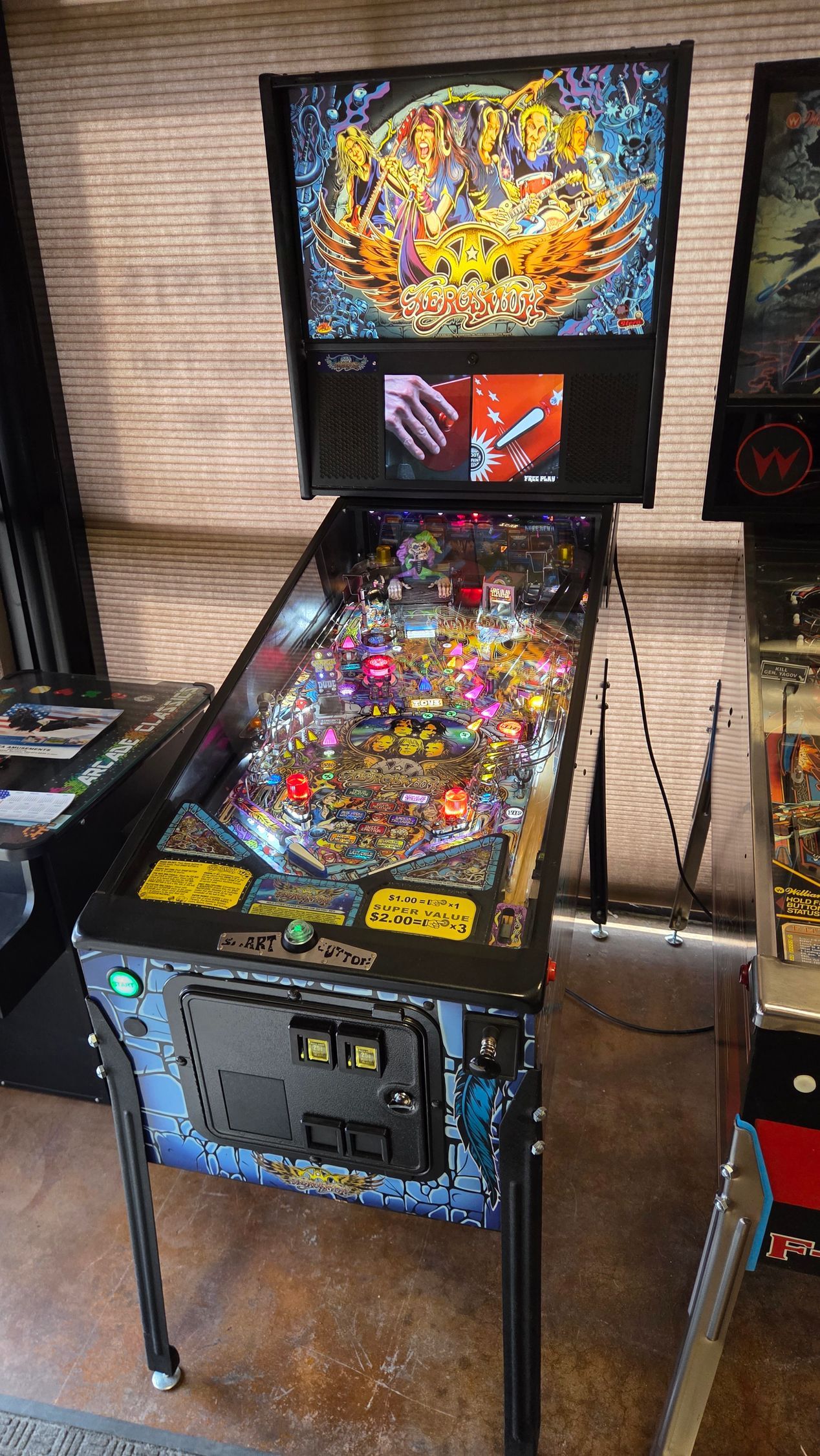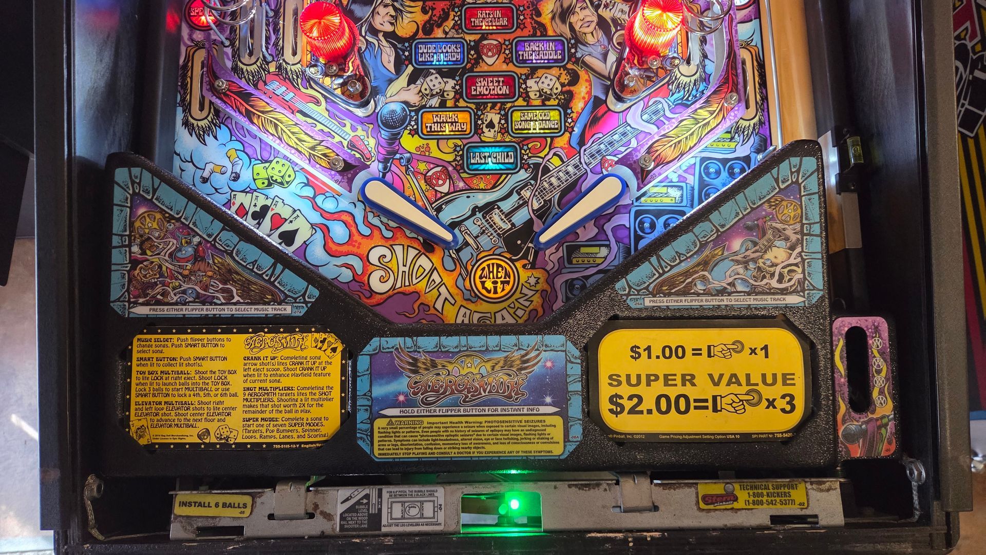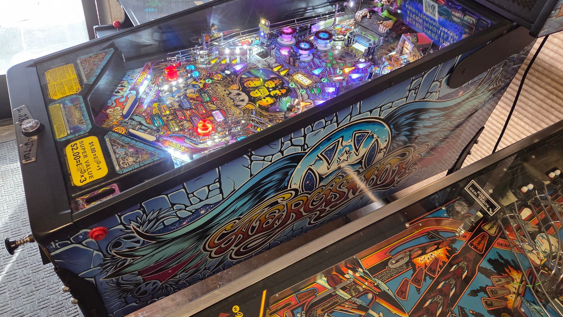 This routed Aerosmith Pro has been updated with the latest code, had its flippers and pop bumpers freshly rebuilt, and is ready to go in your home! It was always well-maintained while out on location and plays great.