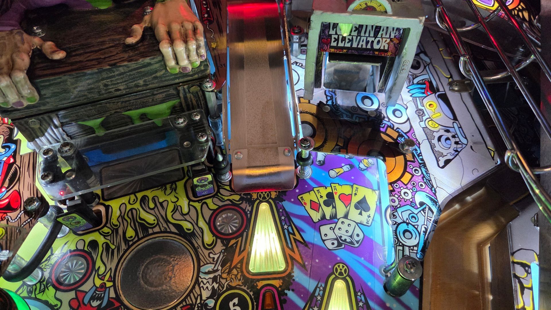 This is a great playing example of a classic Stern title. It has seen many adventures in its life, out in local pizza joints bringing enjoyment to thousands for the past 20+ years. Now it's ready to retire from that life and be enjoyed in your home. It has new teardrop side rails, playfield glass, LEDs, and color display*. It has been fully gone through and plays great!